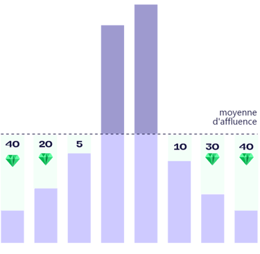 2. Récompense des créneaux de visite en dessous de la moyenne, plus le créneau est en dessous de cette moyenne, plus le nombre de points accordés est élevé, encourageant ainsi les visites durant les périodes de moindre affluences.