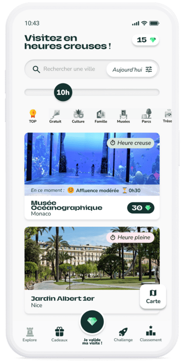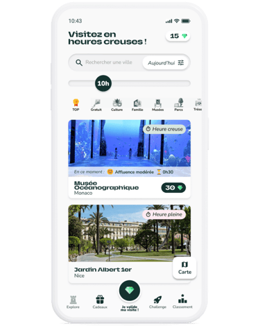 Découvrez l'application idéale pour planifier vos visites de sites touristiques selon l'affluence. Visitez en limitant votre impact environnemental et gagnez des récompenses !